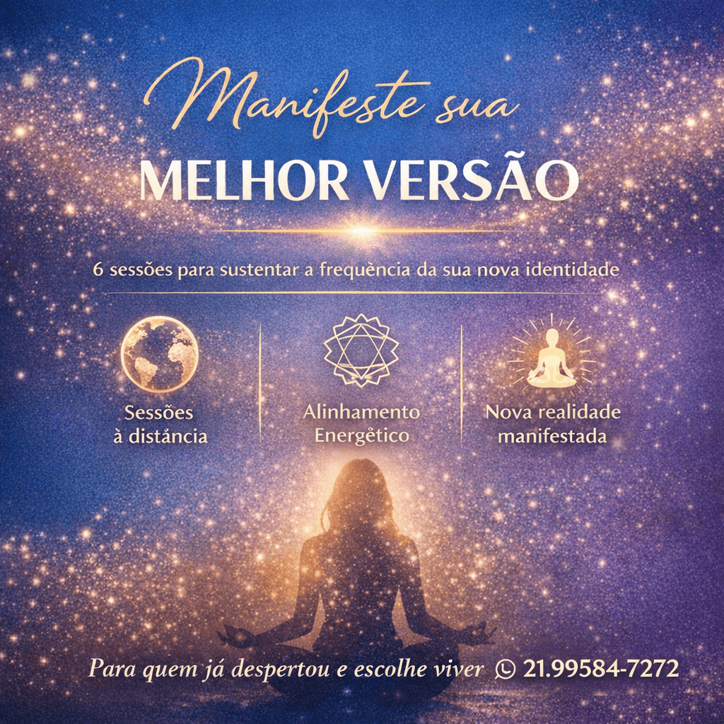 Durante 6 meses (6 sessões), vou alinhar todo seu sistema energético, que é o responsável por sustentar a nova frequência vibracional, tornando possível a manifestação da sua nova identidade.